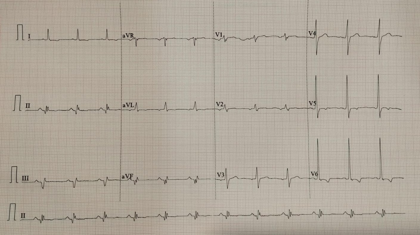 2D ECHO S/O INFERIOR WALL HYPOKINESIA , LVEF45% WITH PRESERVED WALL THICKNESS.