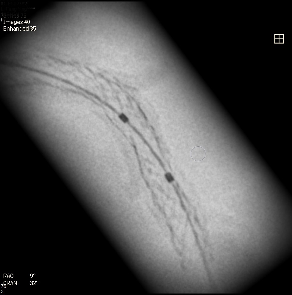 This is a 70 years old female with Hypertension, Diabetes Mellitus, Dyslipidemia, and 3-vessel-disease post LAD and LCX stenting at a local hospital.She got angina deterioration in recent 3 months and received coronary angiography in the local facility. After that, the patient was refered to our center for balloon un-dilatable Severe In-Stent Restenosis.