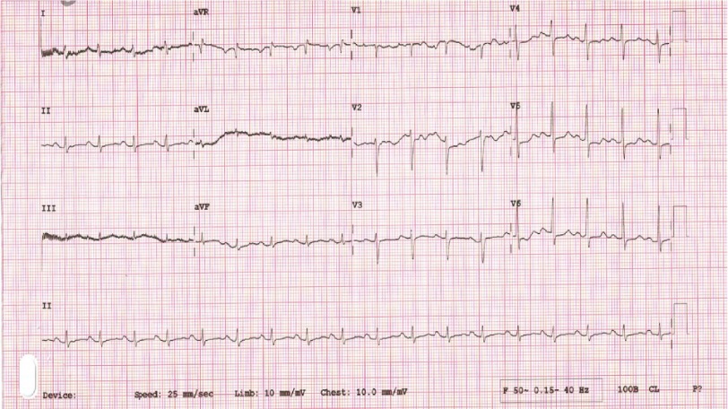 A 69 year-old Thai woman presented with chronic dyspnea and orthopnea for 1 week. she was stable vital signs. Cardiovascular examinations are unremarkable, Pulmonary examinations revealed tachypnea and fine crepitation of bilateral lower lung fields. ECG showed sinus rhythm 110 bpm with ST depression in leads I, II, aVL and V4-V6, with CXR showed cardiomegaly with bilateral pulmonary congestion. Troponin I was highly elevated result as 2261.9 ng/L. Acute NSTE-ACS with heart failure was diagnosed.