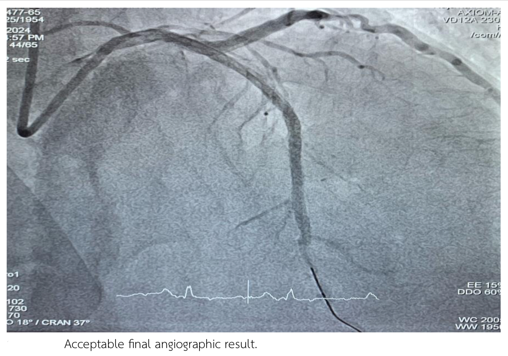 The patient still had chest pain then stage PCI to CTO LAD with Right distal radial approach (DRA).