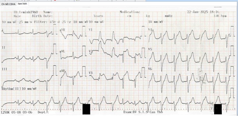 A 66-year-old male was admitted to the Internal Medicine department due to exertion chest pain. 10 hours before admission, he experienced a 10-minute angina episode, which radiated to both shoulders and to the back. Past history included ischemic heart disease. He was dianosed at a local hospital as having anterior myocardial infarction, at hour 1. ECG on admission: sinus rhythm, with non-sustained monomorphic ventricular tachycardia, elevated ST segment in V1-V6.