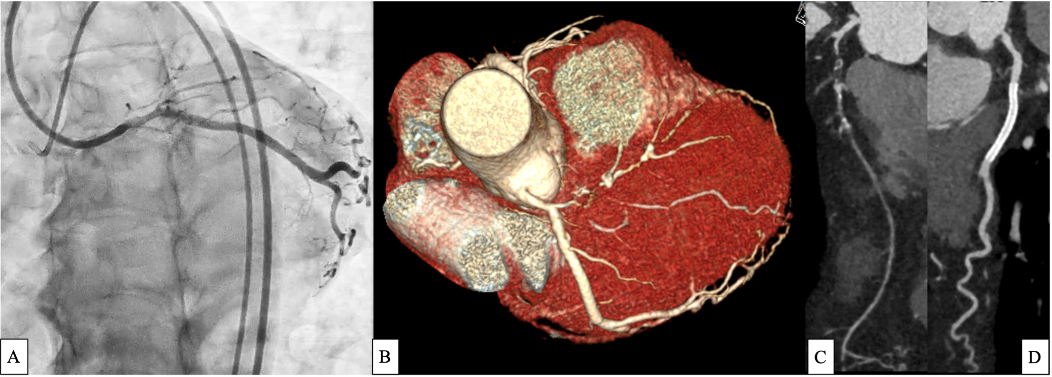 Coronary CT angiography (CCTA) revealed a right-dominant system with a noncalcified plaque causing approximately 50% stenosis in the left main (LM). The LAD proximal (including os) had a CTO with mixed plaque, measuring approximately 1.5 cm in length, while the mid LAD showed a severe (90%) mixed plaque stenosis, suggesting tandem high-grade lesions.