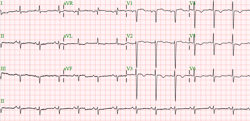 A 63-year-old male with a medical history of poorly controlled type 2 diabetes, hypertension, stage III chronic kidney disease, and a previous non-ST elevation myocardial infarction (NSTEMI) treated with drug-eluting stents, presented to the emergency department with recurrent chest tightness, which lasted approximately 10 minutes. Upon examination, his vital signs were stable, and his heart rhythm was regular with normal heart sounds and no murmurs. Lung auscultation was clear bilaterally.