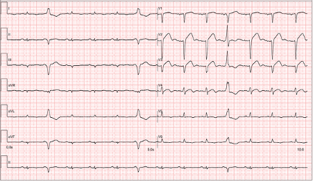 ECG of the patient showed ST elevation over anterior leads (Figure 2). Echocardiogram revealed left ventricular ejection fraction (LVEF) of 20% with global hypokinesia worse over apical region. Point-of-care testing revealed elevated serum troponin level.The low-density lipoprotein level remained elevated despite intensive lipid-lowering therapy with statin and Evolocumab, the latter of which was initiated after staged PCI. These might have contributed to the lipid-rich nature of the plaque.