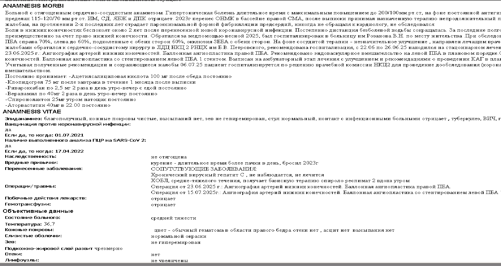 a patient with a burdened cardiovascular history. Hypertension for a long time with a maximum increase of up to 200 and 100 mm Hg against the background of constant antihypertensive therapy, usual indicators within 115-120 and 70 mm Hg. In 2023, he suffered an ischemic stroke in the basin of the right SMA.