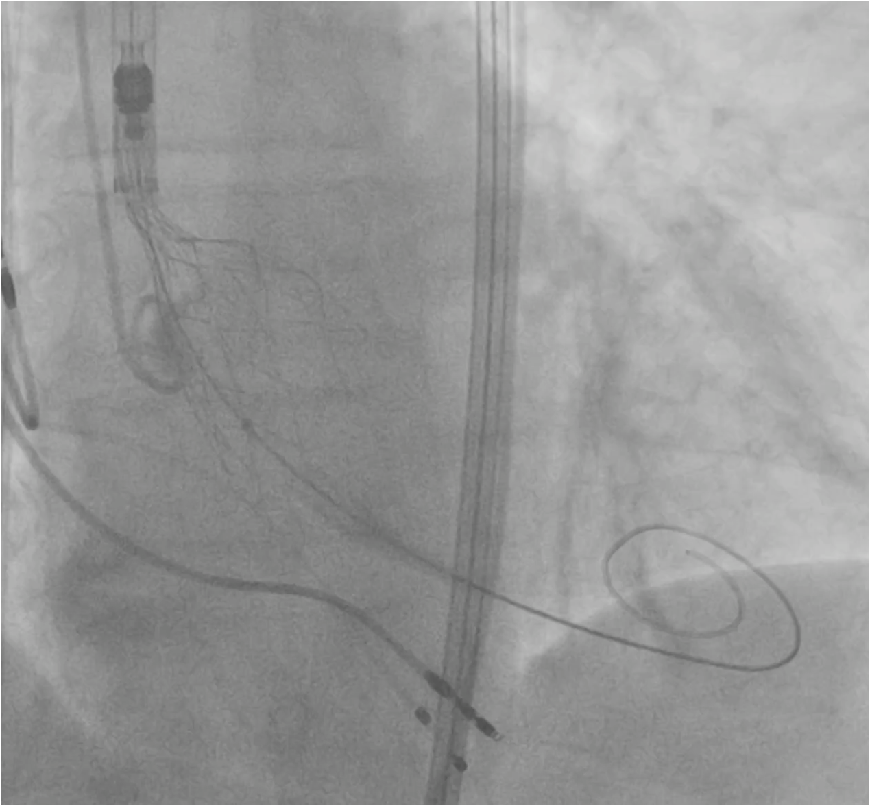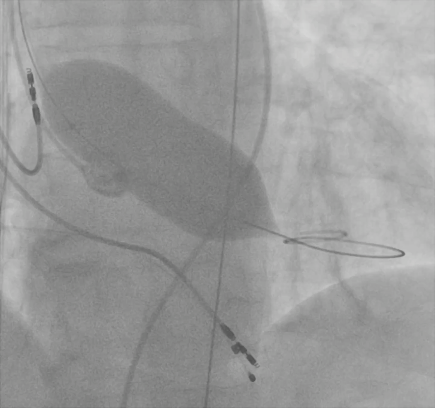 It is important to assess the patency of the coronary arteries after transcatheter implantation of the aortic valve in several projections, especially when the interpretation of the pacemaker is difficult due to the imposed rhythm of the pacemaker.