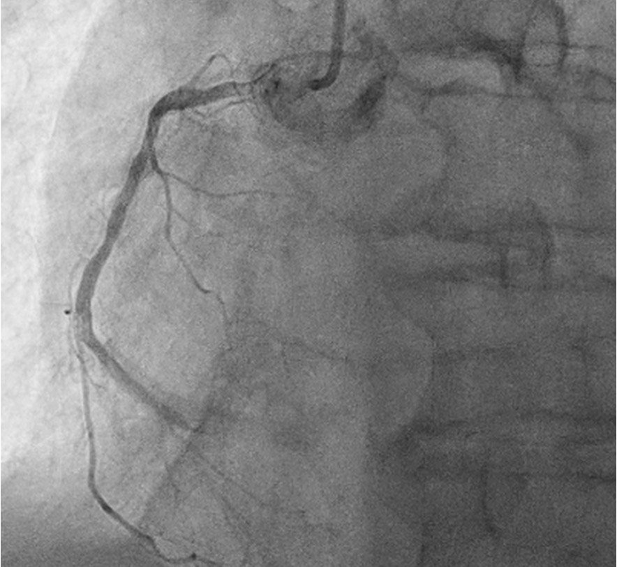 This confirmed severe calcific triple vessel disease. Severe mid LAD diagonal bifurcation stenosis (Medina 1,1,1). Severe LCx ostial and mid stenoses with large ostial calcific nodule. Severe ostial RCA stenosis and distal RCA CTO receiving collateral supply from the septal perforators. CABG was declined due to high surgical risk. After extensive discussions with the patient, his family, and the Vascular Surgical team, high risk vascular and coronary interventions were undertaken.