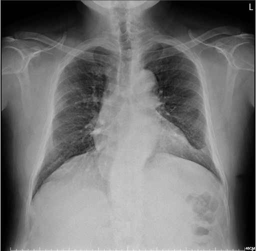 This 54-year-old male with underlying history of coronary artery disease with double vessel disease, status post percutaneous coronary intervention for right coronary artery, hypertension and hyperlipidemia for years with both under medication control. He complained of intermittent chest tightness and shortness of breath for weeks with symptoms progressively worsening. Physical examinations showed clear breathings sounds, Grade I systolic murmur at apex with regular heart beats.